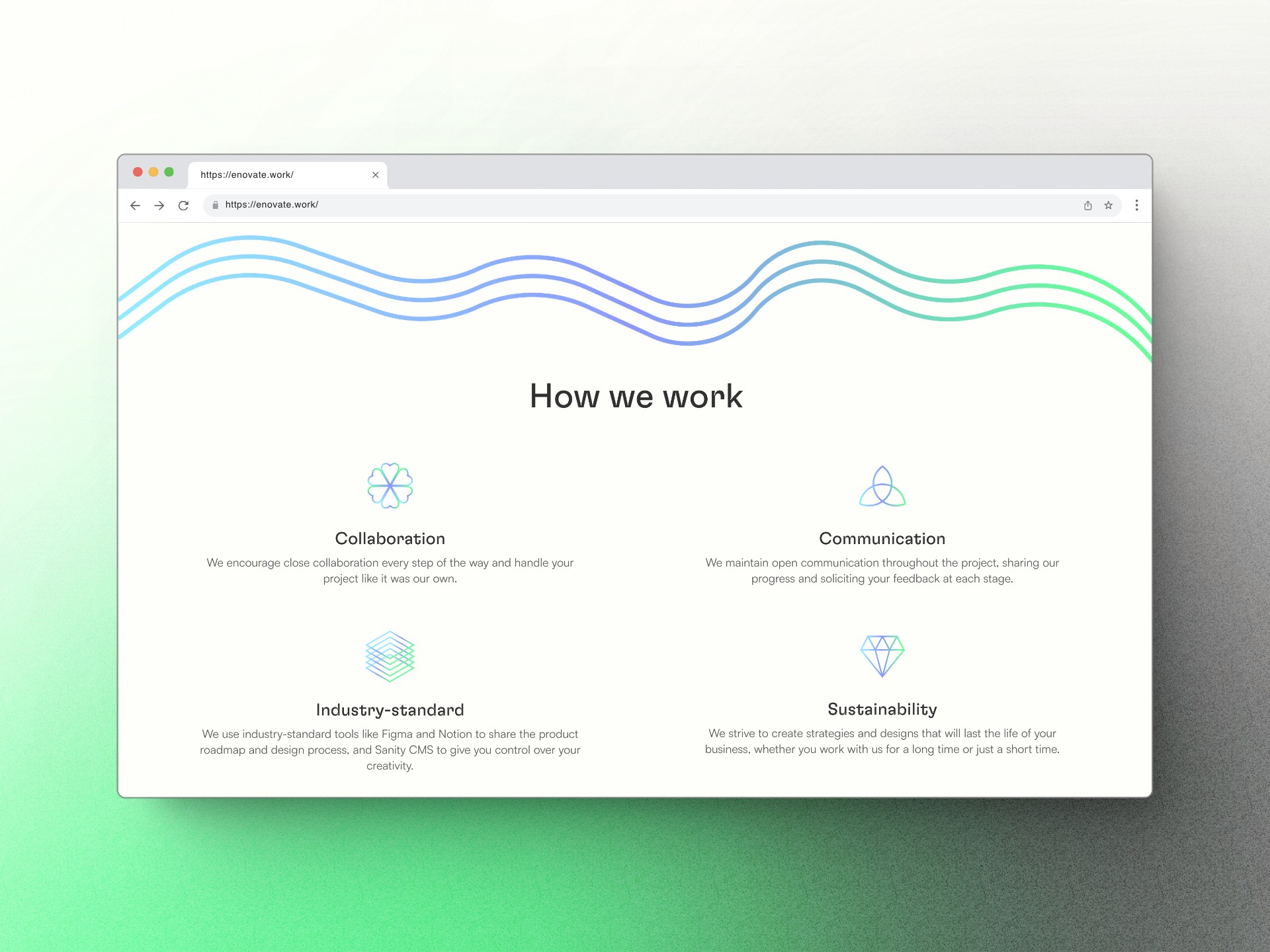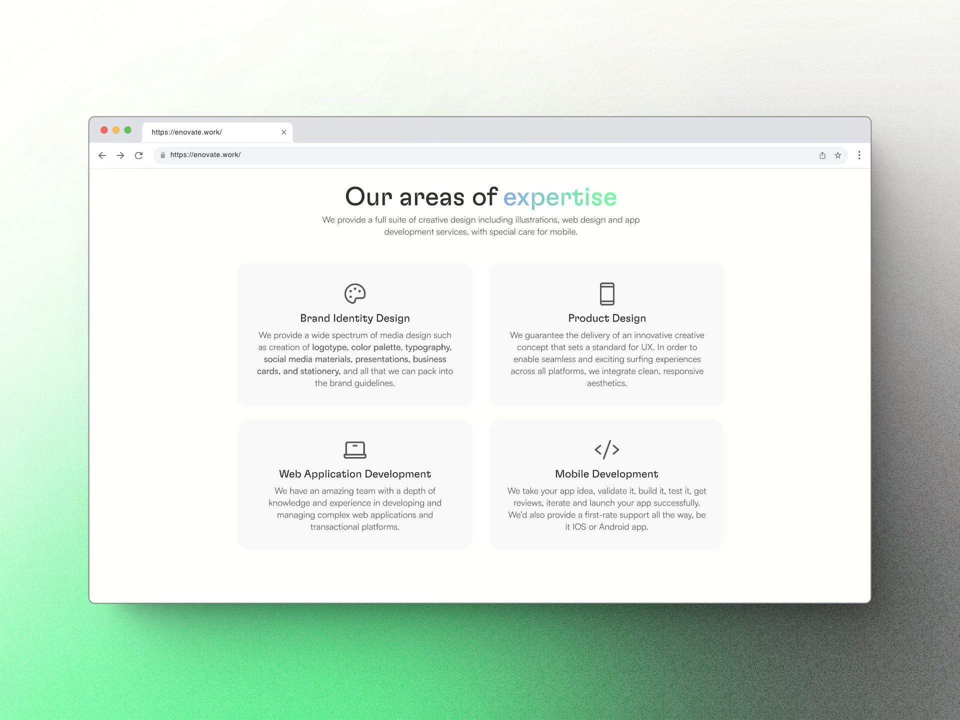 Enovate, a Design-As-A-Service agency, specializes in providing tailored design solutions to startups and business owners via a subscription-based approach that accommodates a wide range of budgets. Enovate offers more than just design services; it also helps companies build web and mobile applications to enhance their business capabilities.