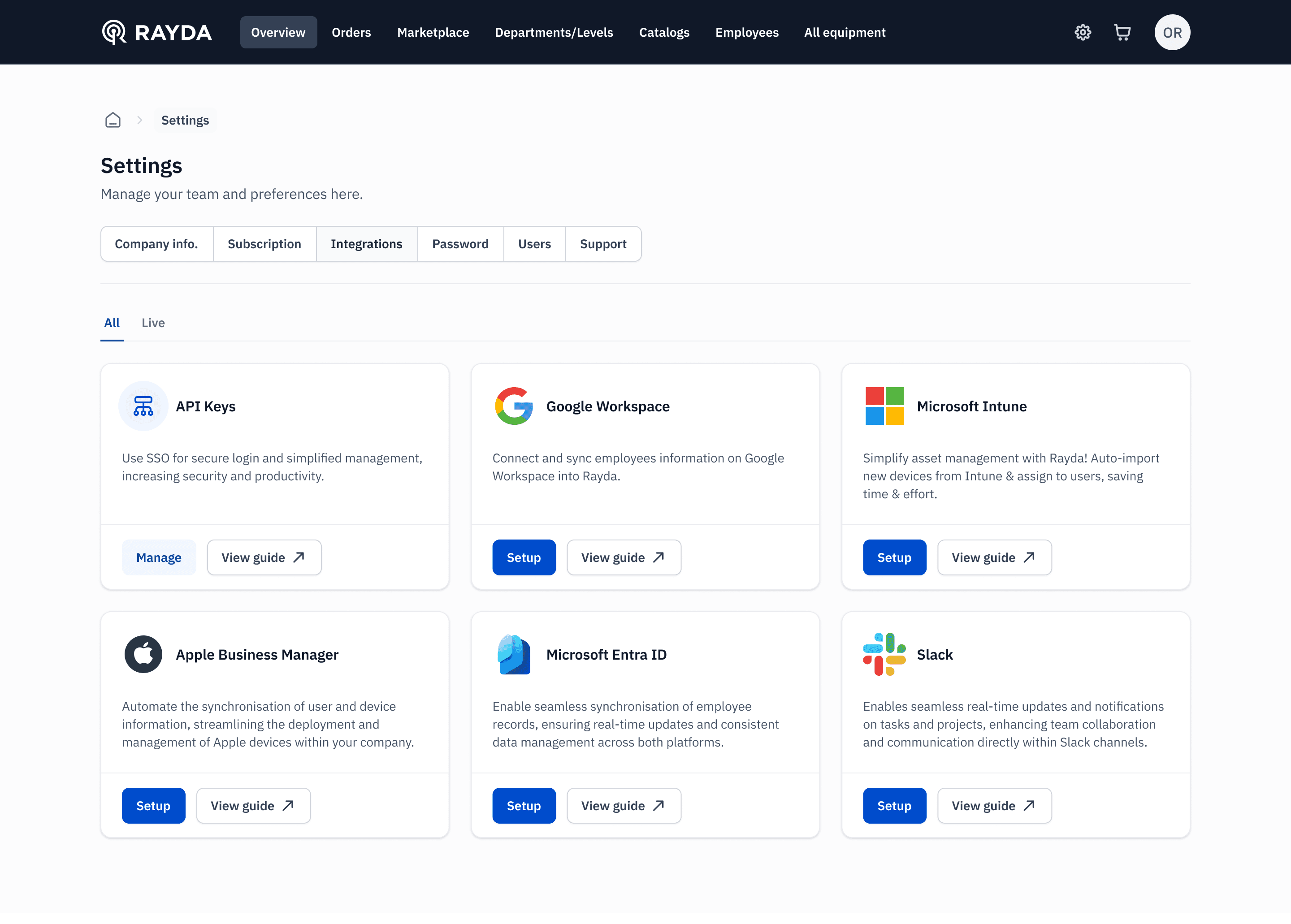 "As a customer, I want to be able to integrate with platforms like Microsoft Entra ID, Microsoft Intune, Apple Business Manager, and Google Workspace to easily onboard employees."